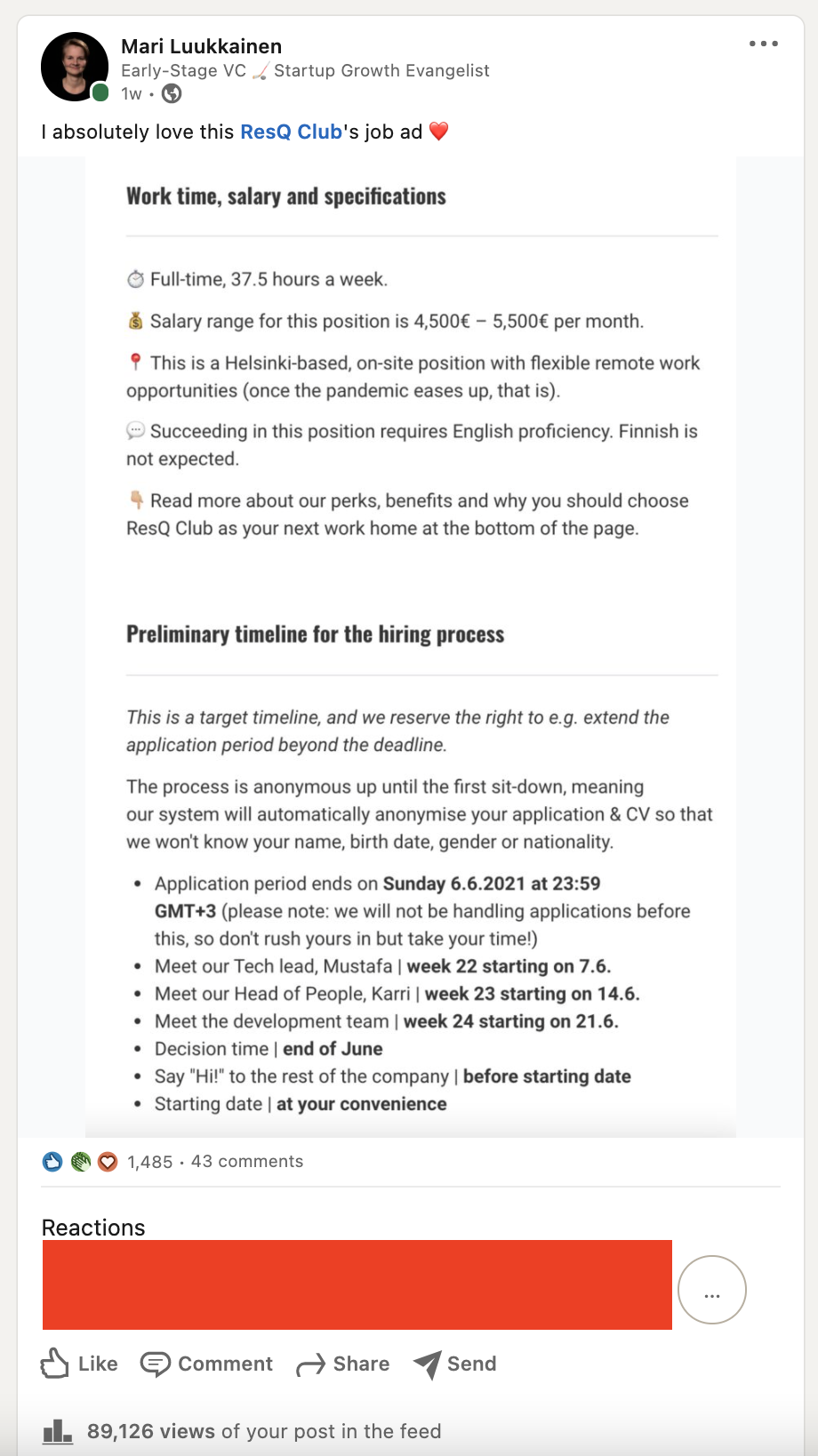 This LinkedIn post about ResQ Club’s job ad I spotted from a Discord suddenly received lots of love.