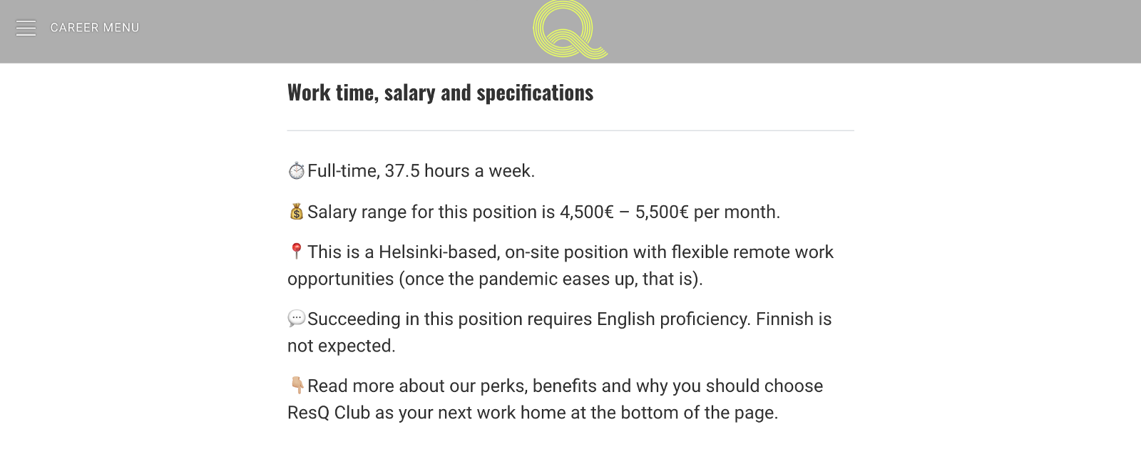 Ideal candidate for ResQ Club is “an empathetic team member” and “an excellent communicator” instead of “a high-performer.” This kind of wording can balance the gender-diversity of applicants. More in the next section.