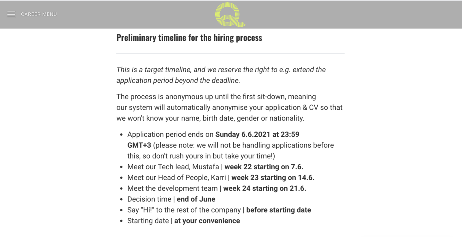 Most of us like to be able to plan our lives, personal and professional. Telling potential applicants how your hiring process works, allows them to do that. Naturally, timelines may change, but being given a general idea of the steps involved is useful to candidates.