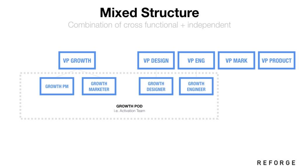 With mixed structure, you have designated growth team members within key departments.