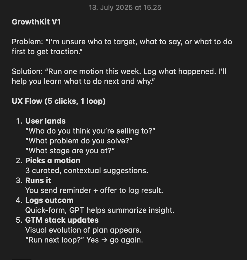 I’m building a second SaaS product - this time, based on a growth iteration model I’ve been refining over the past few years. I’ve taught it to over 300 founders and operators. It’s helped drive results in teams like Freska. And now I’m trying to compress it into software.